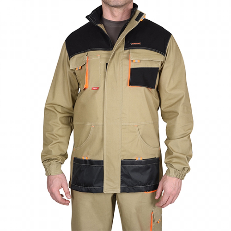 - Костюм Манхеттен практичного песочного цвета прекрасно подходит для работ в теплое время года. Смесовая ткань из 98% хлопка и 2% эластана обладает эффектом стрейча и обработана МВО пропиткой для защиты от масляных и водных загрязнений. Плотность 250 г/кв.м делает спецодежду прочной и износостойкой. Натуральность основного материала способствует воздухообмену и гипоаллергенности.