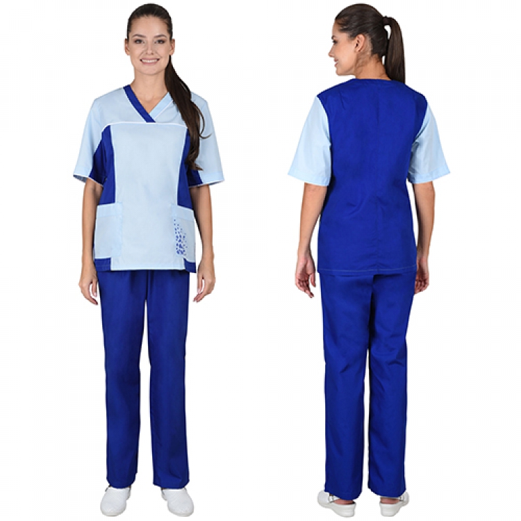 - Костюм Ирина изготовлен из высококачественных материалов, прекрасно подходящих для работы в помещениях и на открытом воздухе в теплое время года работницам медицины и других сфер деятельности. Легкая смесовая ткань состоит из 65% полиэстера и 35% хлопка. Это оптимальное сочетание синтетических и натуральных волокон, которое обеспечивает изделиям высокую степень износостойкости, неприхотливость в уходе, а также отличный воздухообмен и комфорт при длительной эксплуатации.