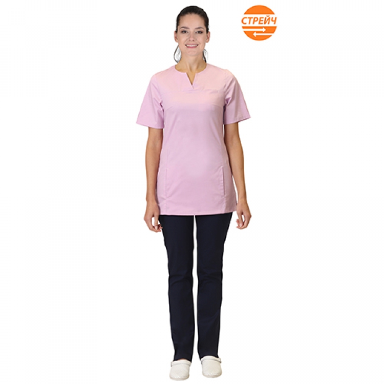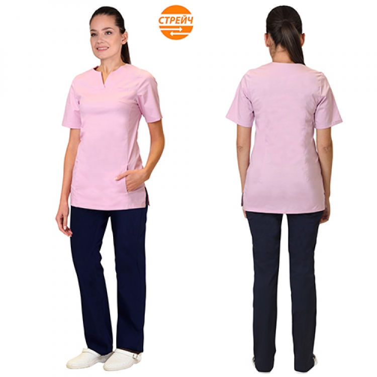 - Женский костюм Валерия выполнен из поликоттона розового и темно-синего цвета. Основная ткань Твил-Стрейч изготовлена из 55% хлопка и 45% полиэстера. Это очень комфортный эластичный материал, который не сковывает движений, обладает прекрасной воздухопроводностью, не провоцирует излишнее потоотделение, легко отстирывается и быстро высыхает.