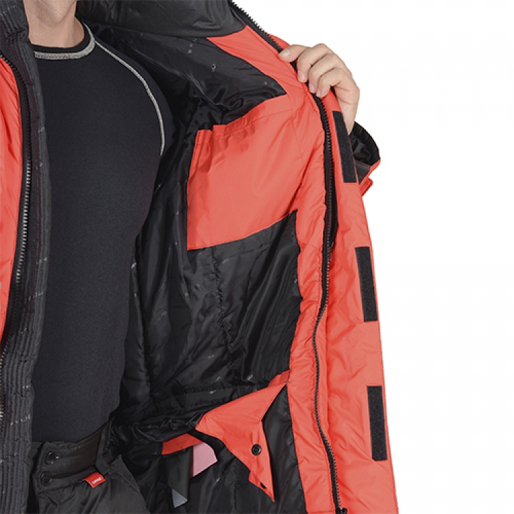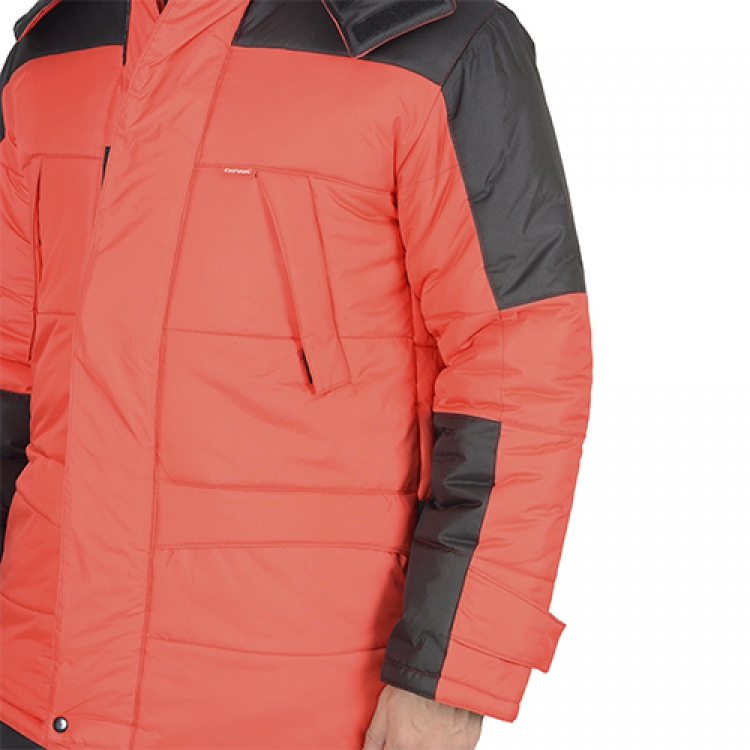 - Яркая куртка Европа красного цвета привлечет и обратит на себя внимание в любую погоду. Основной материал 100% полиэстер обладает высокой прочностью и износостойкостью, он выдерживает большие нагрузки и защищает от повреждений. Такая ткань является неприхотливой в уходе и не деформируется в процессе длительной эксплуатации. Инновационный термофилл обеспечивает хороший воздухообмен, держит форму, он легкий и эластичный, благодаря чему трехслойный утеплитель не сковывает движения во время работ в зимнее время.
