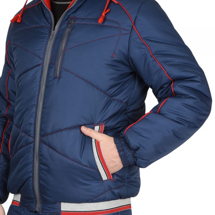 - Утепленная мужская куртка Имидж выполнена из 100% полиэстера и утеплена двухслойным синтепоном плотностью 120 г/кв.м.