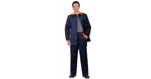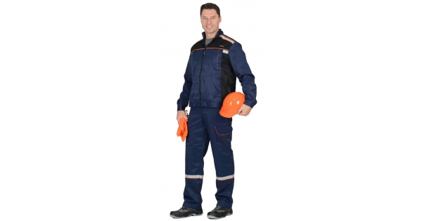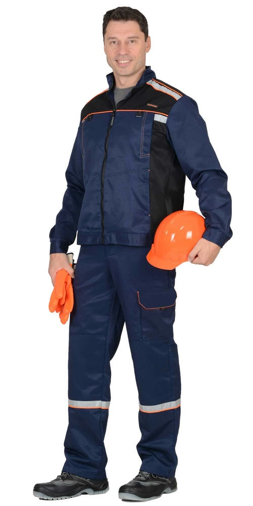 Костюм СИРИУС-АСПЕКТ куртка длин., брюки, синий с черным и оранжевой отделкой
