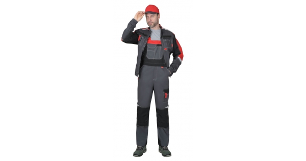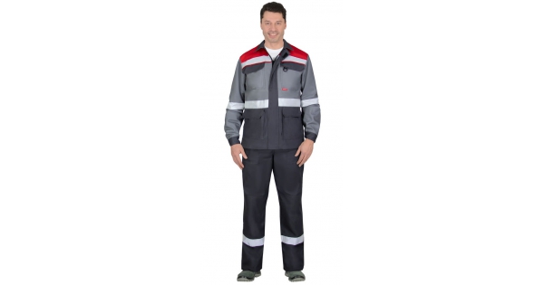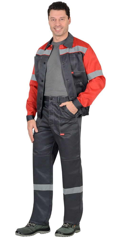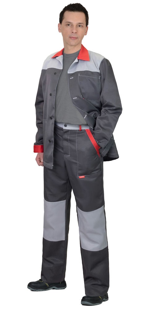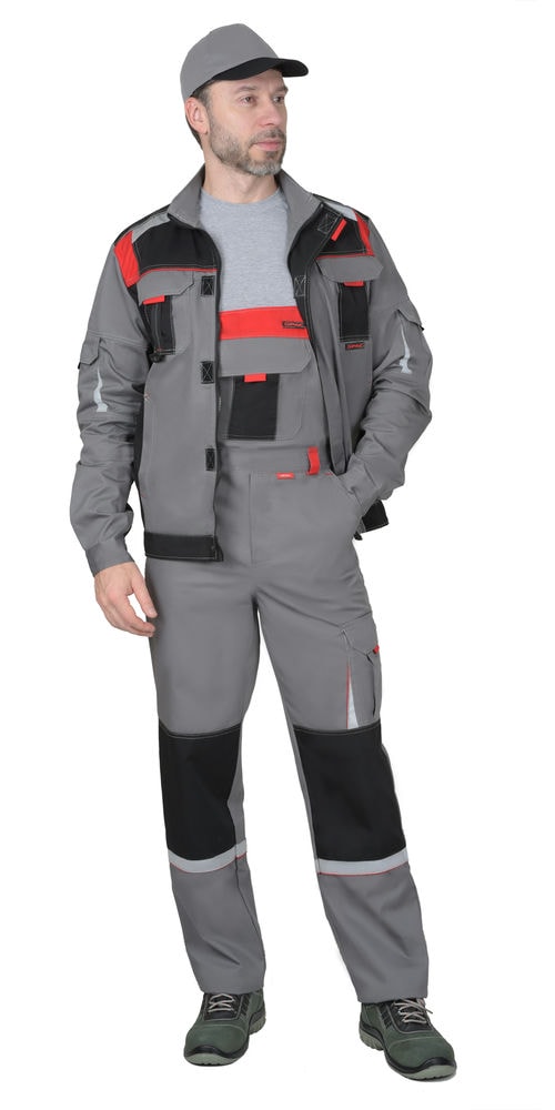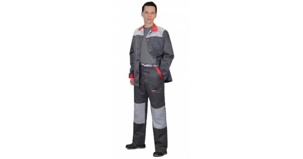 Костюм СИРИУС-АСПЕКТ куртка длин., брюки, средне-серый с черным и красной отделкой