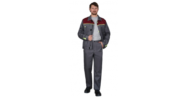 Костюм СИРИУС-ФАВОРИТ куртка, брюки серый с бордовым