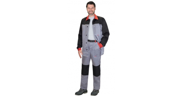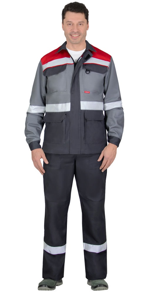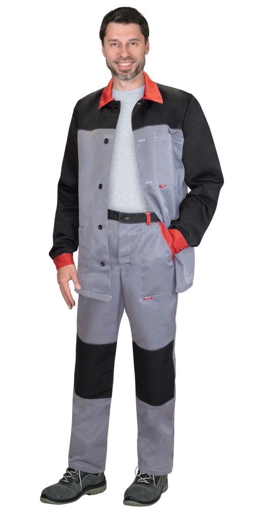 Костюм СИРИУС-СТАН куртка, п/к ср.серый с черной и красной отделкой