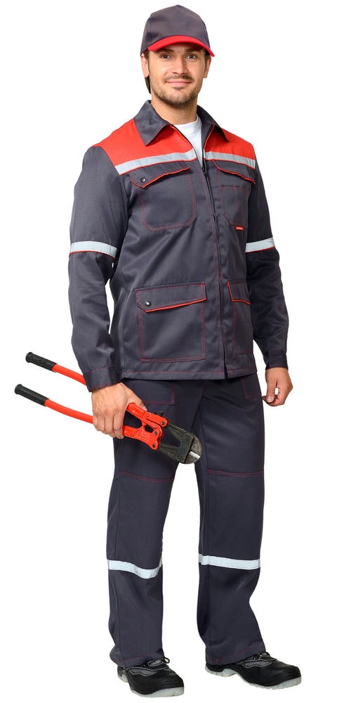 Костюм СИРИУС-МЕХАНИК куртка, брюки серый с красным и СОП