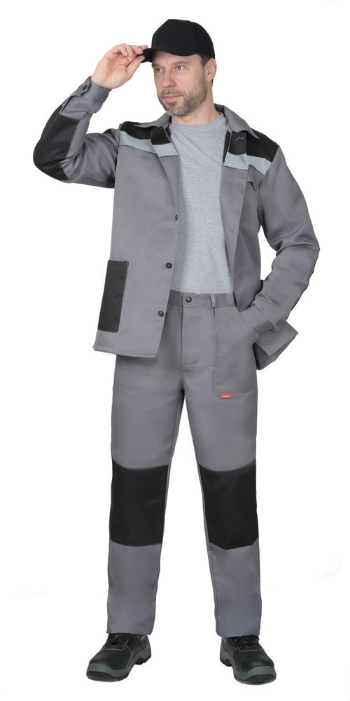 Костюм СИРИУС-СТАНДАРТ куртка, брюки ср.серый с черным СОП 50мм