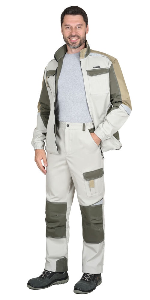 Костюм СИРИУС-КАСПИЙ куртка, брюки, молочный с оливой, песочным и СОП