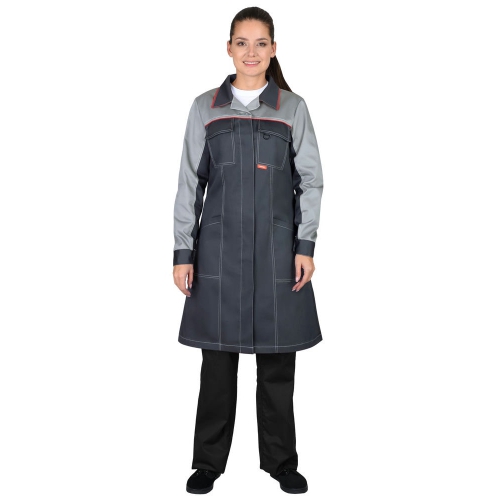 Халат СИРИУС-ИРИНА женский, тёмно-серый со светло-серым и красным кантом