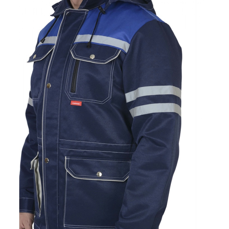 Ткань верха: полиэфирнохлопковая (смешанная) водоотталкивающая (ВО) пл.270 г/кв.м. состав 80% п/э 20% х/б, цвет темно-синий