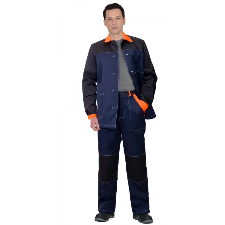 Костюм СИРИУС-АСПЕКТ куртка длин., брюки, синий с черным и оранжевой отделкой
