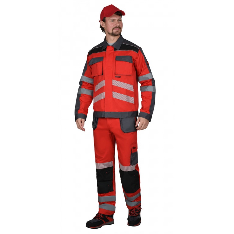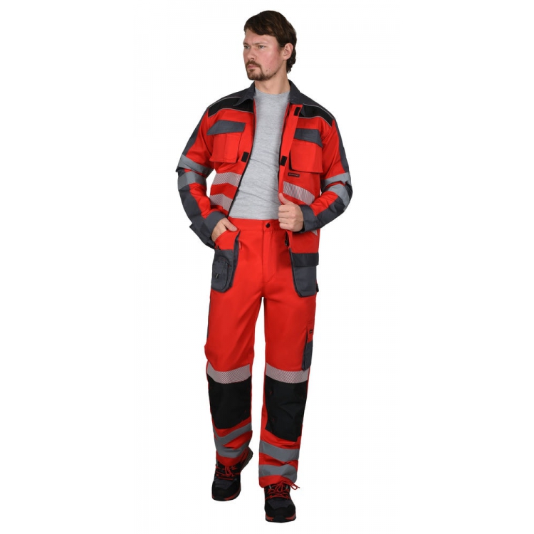 Костюм СИРИУС-АТОМ куртка, брюки красный с серым