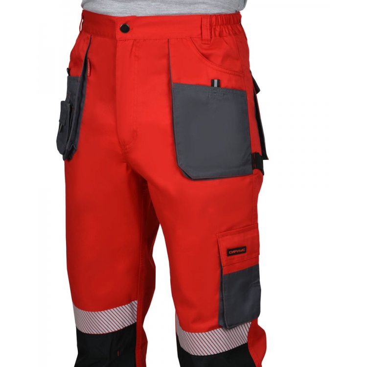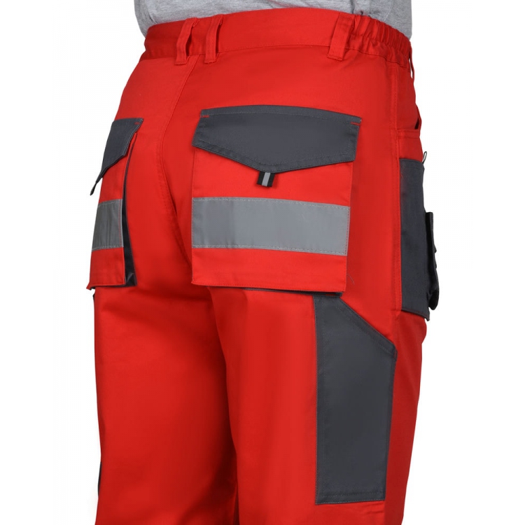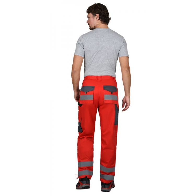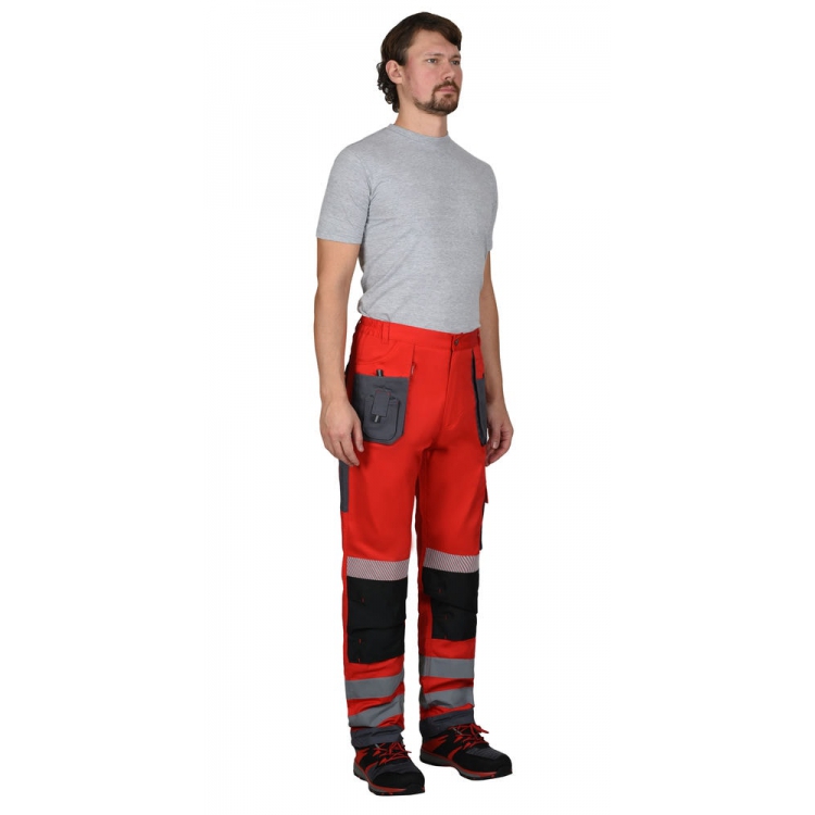 Брюки прямого кроя на поясе, с застёжкой гульфика на молнию, с накладными карманами спереди, сзади и на боковых швах. Брюки с усилительными накладками в области колен с нижним входом для амортизационного вкладыша.