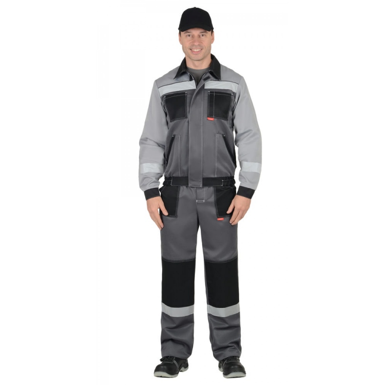 Костюм СИРИУС-ЛИГОР-2 куртка короткая, брюки, темно-серый со светло-серым и черным, СОП