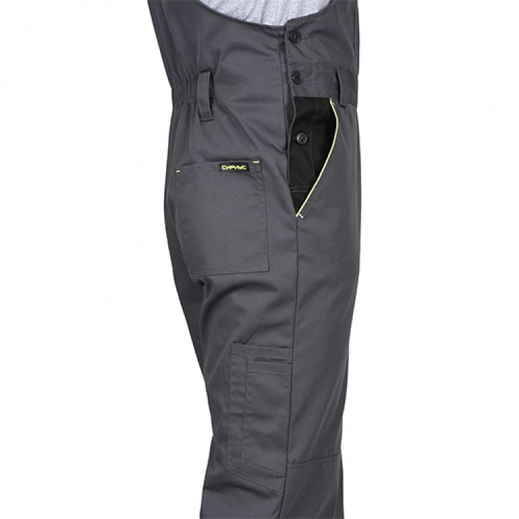 - Полукомбинезон застегивается по гульфику на молнию, а по боковому шву — на пуговицы. По спинке утягивающая резинка способствует лучшему прилеганию к фигуре. Наколенники усиливают защиту ног. Для ремня предусмотрены шлевки.