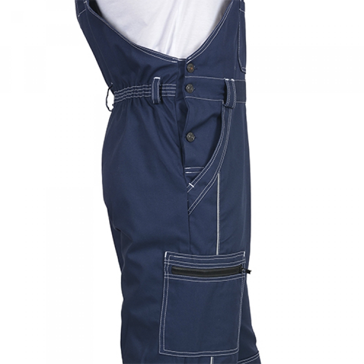 - Полукомбинезон застегивается по гульфику на молнию, а по боковому шву — на пуговицы. Бретели с пластиковыми фастексами дополнены эластичными резинками. Усиленные наколенники оберегают ноги от повреждений. Карманы с различными вариантами закрытия позволяют уместить много необходимых предметов и держать их под рукой. Шлевки фиксируют ремень.