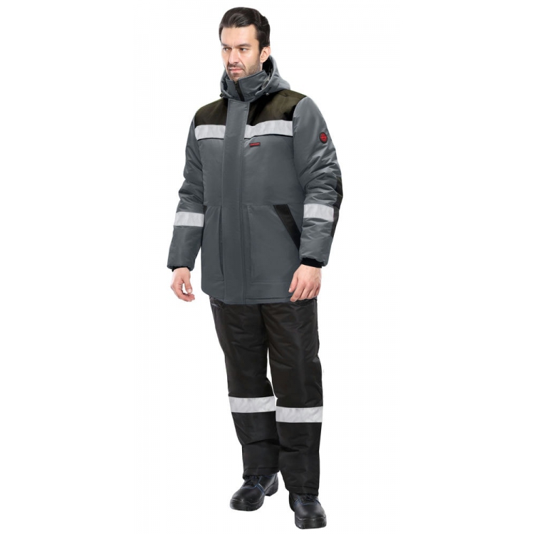 Куртка СИРИУС-КОМФОРТ зимняя, удлиненная темно-серая с черным и СОП