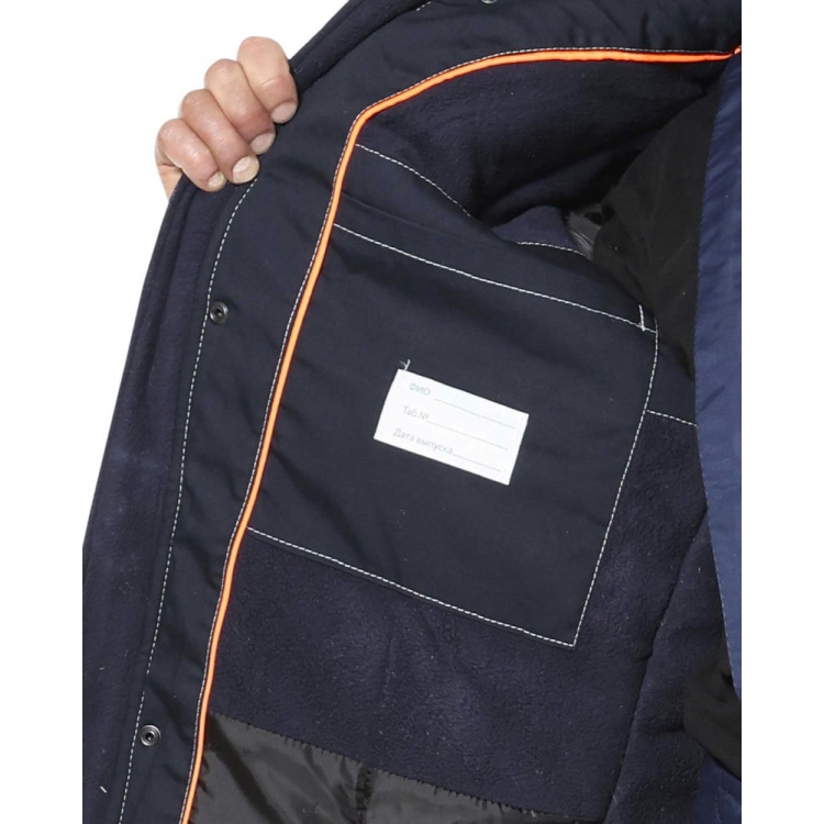 Куртка прямого силуэта, удлиненная, с воротником стойка, с центральной застёжкой на молнию, которая закрыта ветрозащитным клапаном с потайными кнопками. Куртка с верхними и нижними скрытыми прорезными карманами на молнию, с внутренним карманом на молнии с левой стороны от застежки под ветрозащитным клапаном. Спинка понизу фигурная, удлиненная, по боковым сторонам с хлястиками для регулировки прилегания. Рукава втачные, разрезные, с трикотажными манжетами, ширина внизу регулируется хлястиками с потайными кнопками. Внутренний воротник из флиса. Куртка со съемным капюшоном, который пристегивается к горловине куртки с помощью кнопок. Подкладка куртки утепленная, комбинированная: верхняя часть из Флиса, нижняя часть из ткани Таффета. На подкладке куртки с правой стороны накладной карман.