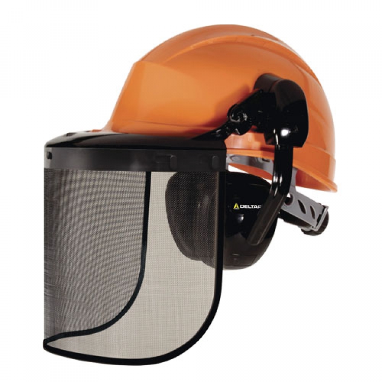В набор комплекта защиты входит лицевой щиток сетчатого типа, наушники противошумные, каска защитная, чехол-сумка для транспортировки и хранения. Наушники и каска произведены из специального прочного ABS-пластика. Каска регулируется при помощи системы Rotor храпового типа. Ремни на каске имеют 8 точек крепления. Размер щитка - 39 х 20 см. Весь комплект разработан учеными-технологами, сбалансирован, эргономичен.