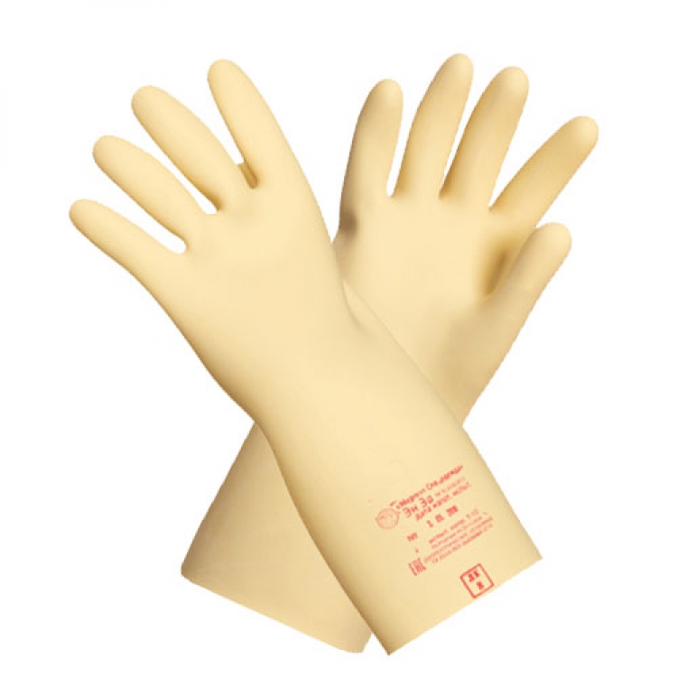 Перчатки диэлектрические бесшовные из натурального латекса с защитой рук от электрического тока напряжением до 1000 В.