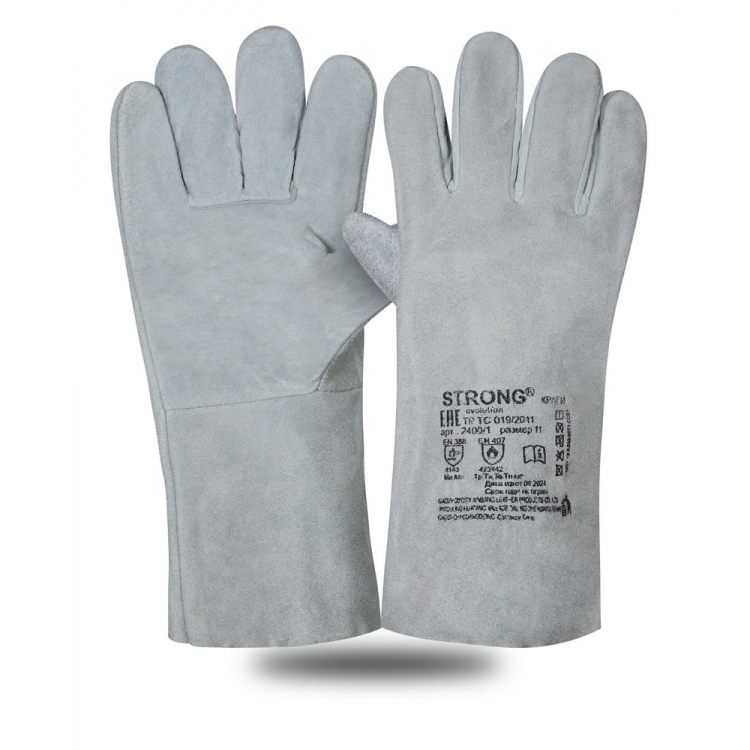 Краги спилковые пятипалые Экстра цвет серый, длина 35см
