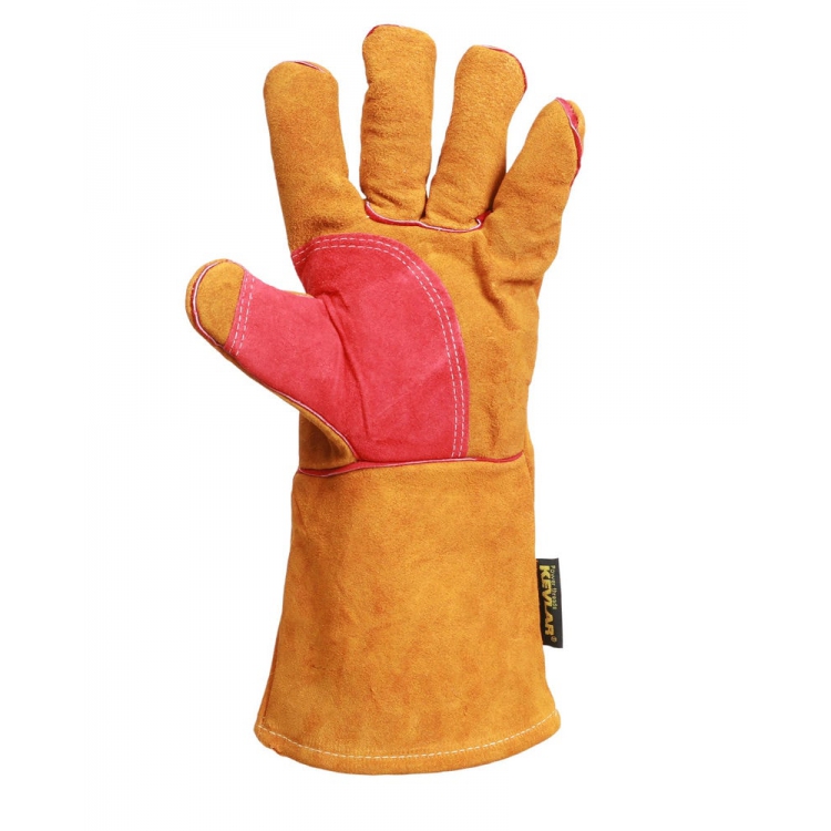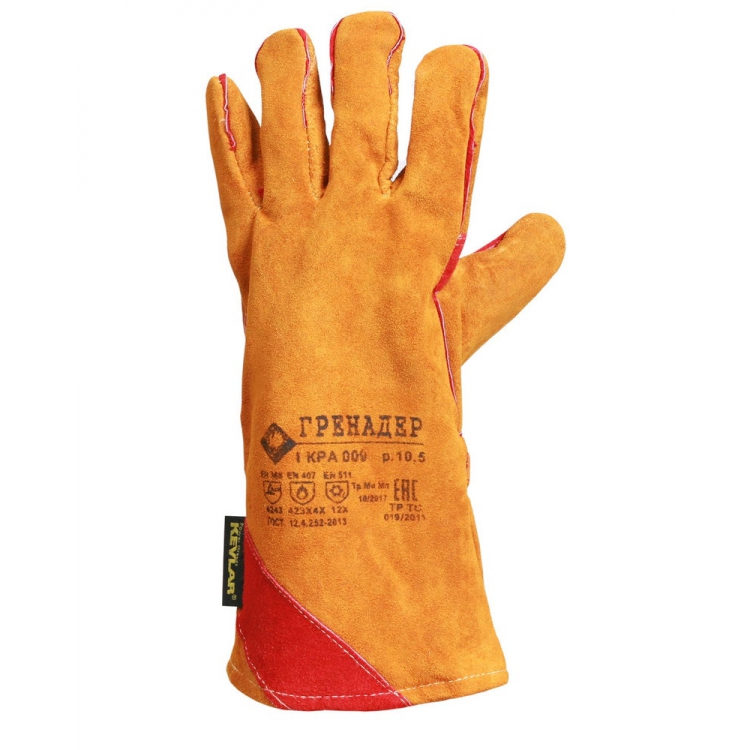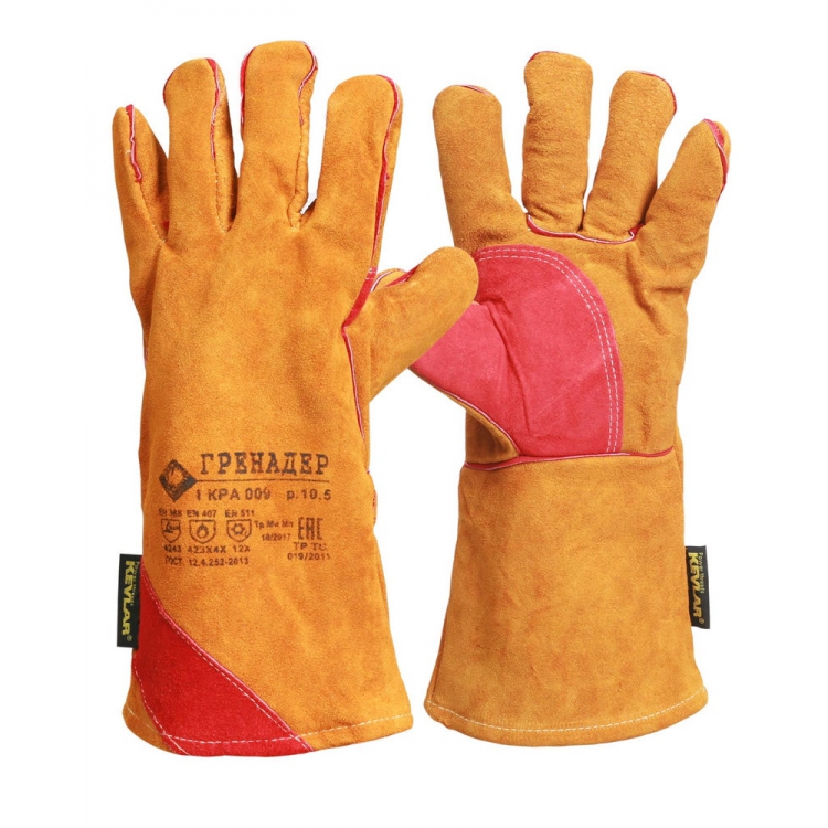 Краги утеплённые спилковые ГРЕНАДЕРнить Кевлар, иск. мех жёлт450 г/м2, дл.45 см, р.12(КРА009)