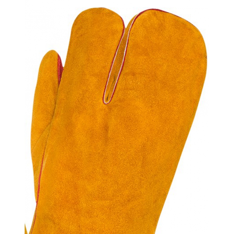 Краги спилковые для сварщика Siberia T3-11 - высокопрочная модель для защиты от истираний, повышенных температур и металлических искр, возникающих в процессе сварки. Найдут применение в металлургических процессах. Модель трехпалая, изготовлена из выделанного спилка с максимальной толщиной до 1,6 мм сорта АВ, окрашенного в золотистый цвет.