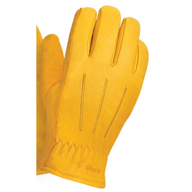 Перчатки кожаные утепленные Siberia 0145 лаконичная и надежная модель защитных перчаток. Изготовлены из мягкой натуральной кожи сорта А+, с максимальной толщиной до 1,6 мм, окрашенной в золотистый цвет. В качестве утеплителя применен мех из хлопковых нитей плотностью 600 г/м2, желтого цвета. Поставляются в едином 10,5 размере, длина перчаток составляет 270 мм.