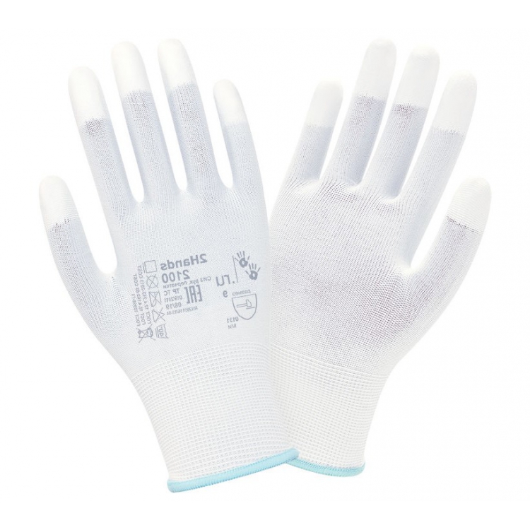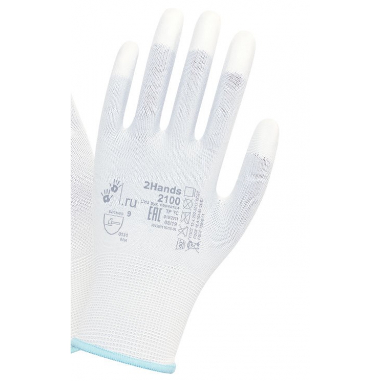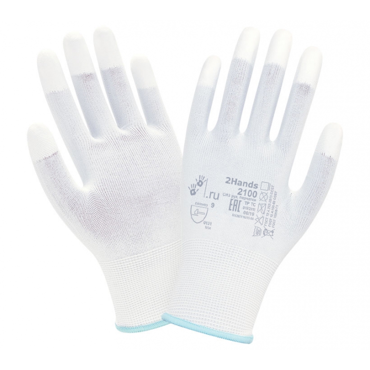 Перчатки нейлоновые с полиуретановым покрытием 2Hands Air 2100 выполнены из бесшовного нейлона плотностью 13 петель белого цвета. Защитное полиуретановое покрытие покрывает только окончания пальцев. Манжета изготовлена в виде плотной резинки на запястье, с двойным оверлочным швом по канту. Перчатки комфортны при продолжительной и непрерывной эксплуатации, плотно прилегают по руке, сохраняют комфортное манипулирование и чувствительность пальцев, поддерживают естественный микроклимат, не оставляют ворса.