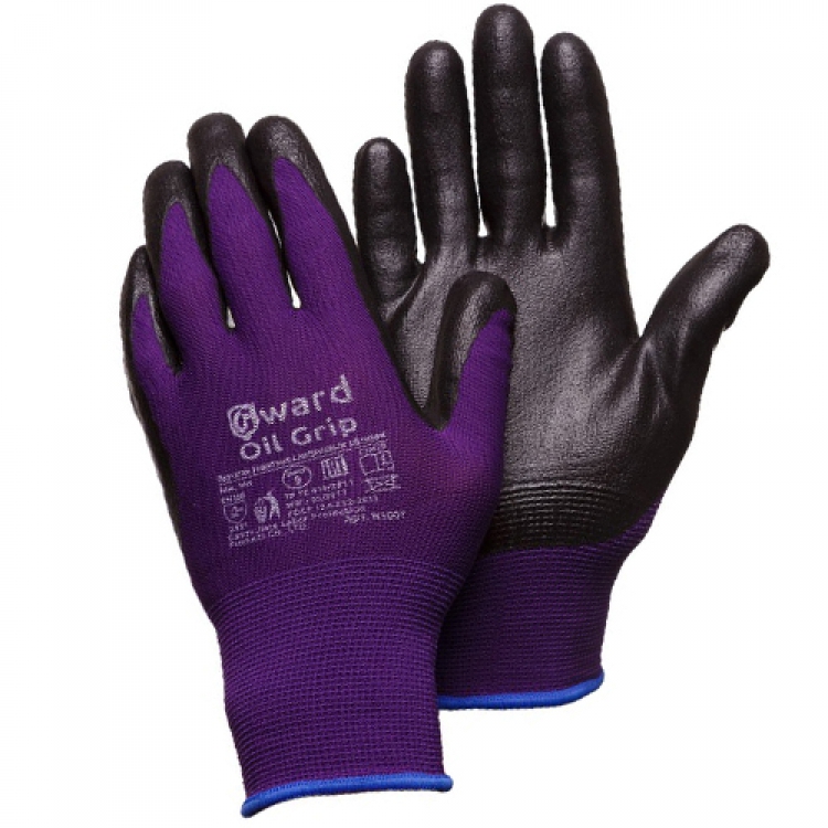 - Фиолетовые нейлоновые перчатки Gward Oil Grip созданы на бесшовной основе 13 класса вязки, которая имеет хорошую аэрацию, не окрашивает руки и не ворсится.