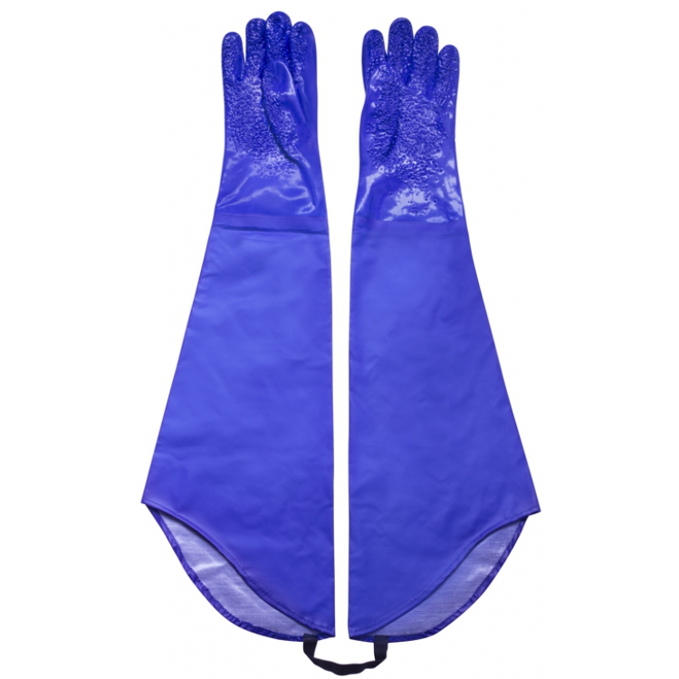 Состоят из защитной перчатки и удлиненного герметичного рукава, общей длиной 880 мм, что позволяет защитить руки работника полностью. Скреплены между собой эластичной резинкой. Основание перчаток длиной 300 мм выполнено из интерлока, с трехслойным ПВХ-покрытием. Внутренняя поверхность ладони и пальцев имеет ПВХ-крошку для комфортного хвата влажных, гладких предметов. Изготовлены в 10, 11 размере. Рукав имеет вид бесшовной основы с защитным покрытием из мягкого ПВХ. Перчатки удовлетворяют требованиям ТР ТС 019, могут быть использованы на рыбоперерабатывающих предприятиях, нефтеперерабатывающей отрасли.