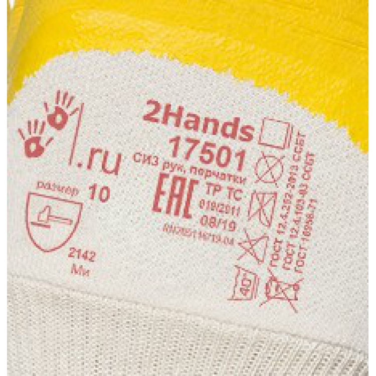 Перчатки с латексным покрытием 2Hands GreenSafety 17501 удовлетворяют требованиям безопасности ТР ТС 019/2011, что подтверждено декларацией о соответствии. Длина перчаток составляет 270 мм, изготовлены в универсальном 10 размере. Защитное покрытие не теряет эластичности при пониженных температурах.