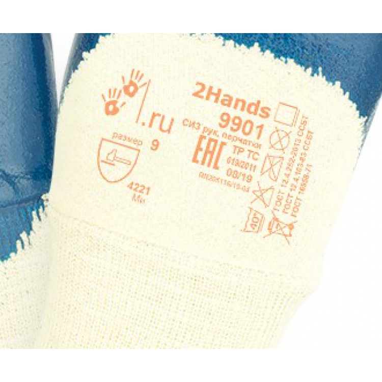 Перчатки могут быть использованы непрерывно длительное время. Не теряют своих защитных и эксплуатационных свойств при стирке. Длина перчаток составляет 270 мм, представлены в размерах 9,10, 11. Информация о защитных свойствах вынесена на тыльную сторону. Перчатки трикотажные с нитриловым покрытием 2Hands 9901 прошли необходимые лабораторные испытания, удовлетворяют требованиям безопасности ТР ТС 019/2011, что подтверждено декларацией о соответствии.