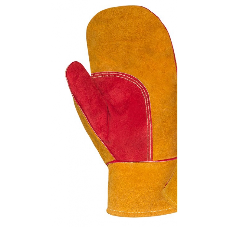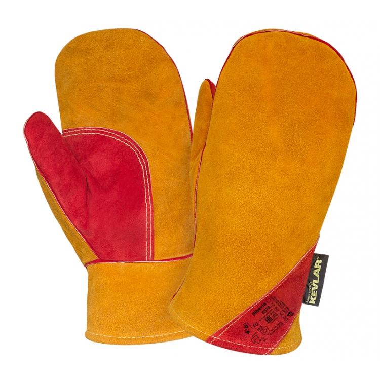 Рукавицы спилковые утепленные Siberia 0378 выполнены из плотной ткани, окрашенной в красный цвет и однородного спилка сорта АВ, с максимальной толщиной до 1,5 мм. На внутренней поверхности ладони и в области большого пальца предусмотрены усилители из дополнительного слоя спилка.