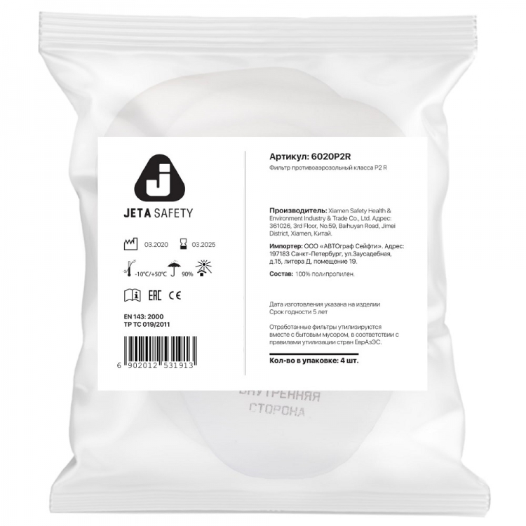 JETA SAFETY 6020 — это надежный выбор для тех, кто ищет предфильтры P2R для защитных масок, совместимые с фильтрами JETA SAFETY и предназначенные для эффективной защиты от пыли, аэрозолей и взвешенных частиц в различных производственных условиях.