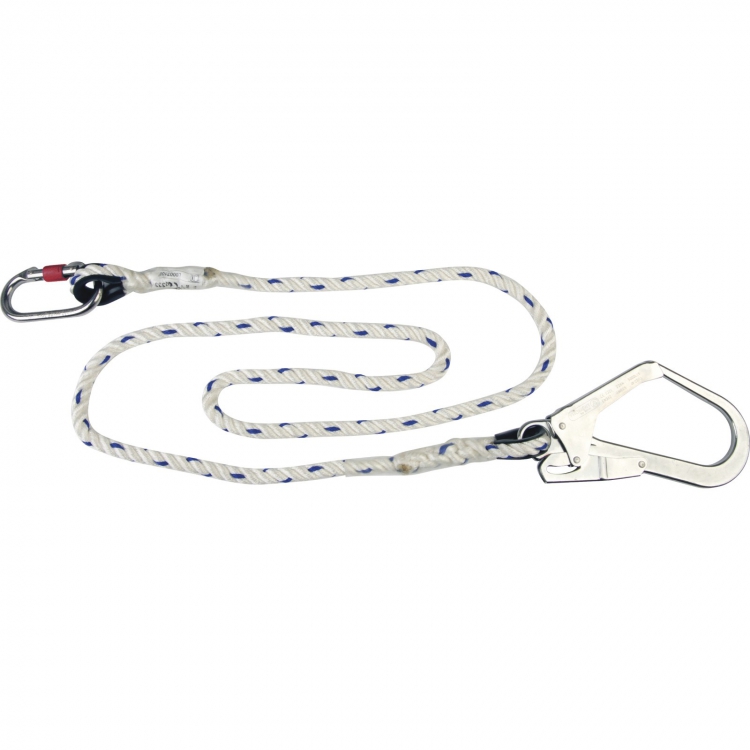 Длина стропа составляет 1,5 м. В комплект входят винтовой карабин АМ002 и карабин-крюк АМ022.