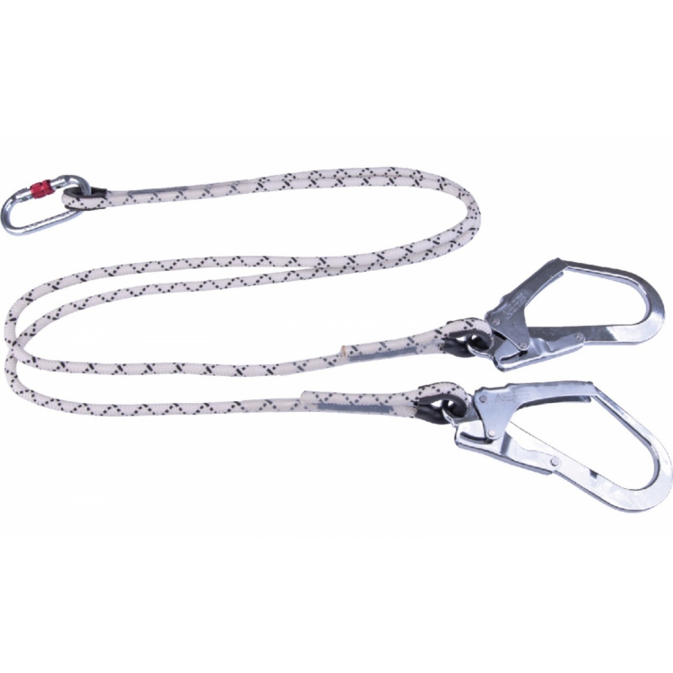 Длина стропа составляет 1,5 м. В комплект входят винтовой карабин АМ002 и 2 карабина-крюка АМ022.