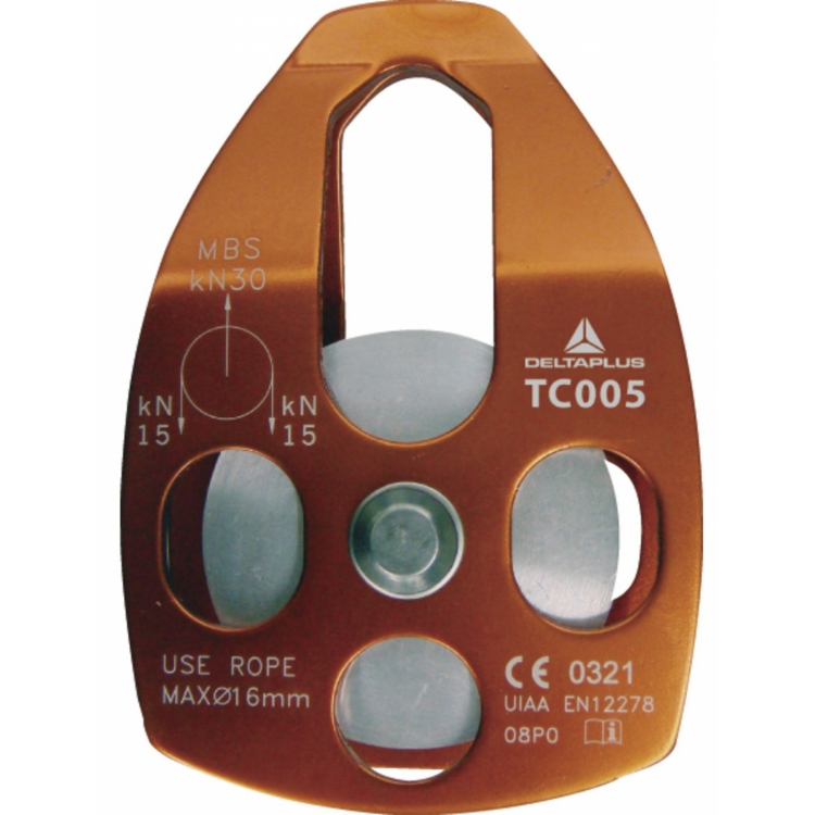 Блок-ролик Delta Plus TC005 дополнен вращающимися фланцами и предназначен для использования с тросами диметром до 16 мм.