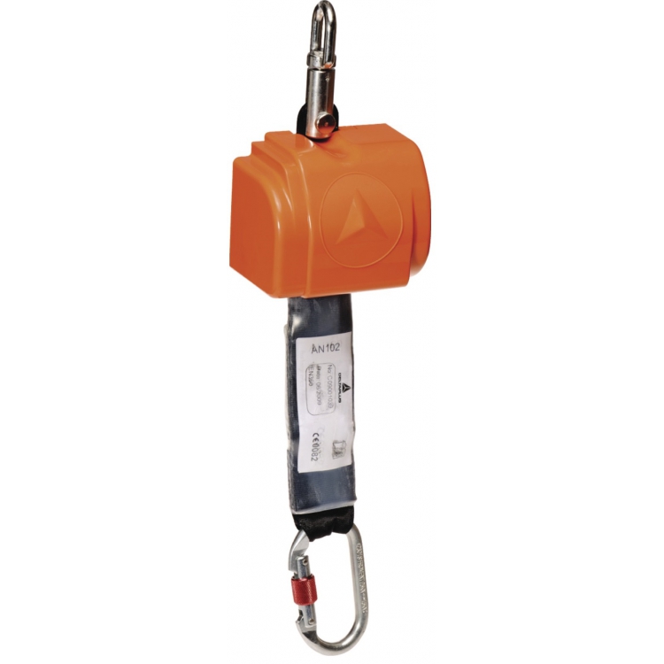 Длина 46-мм ленты составляет 2,5 м. Комплект Delta Plus MEDBLOG AN102 дополнен стальным карабином винтового типа АМ0002.