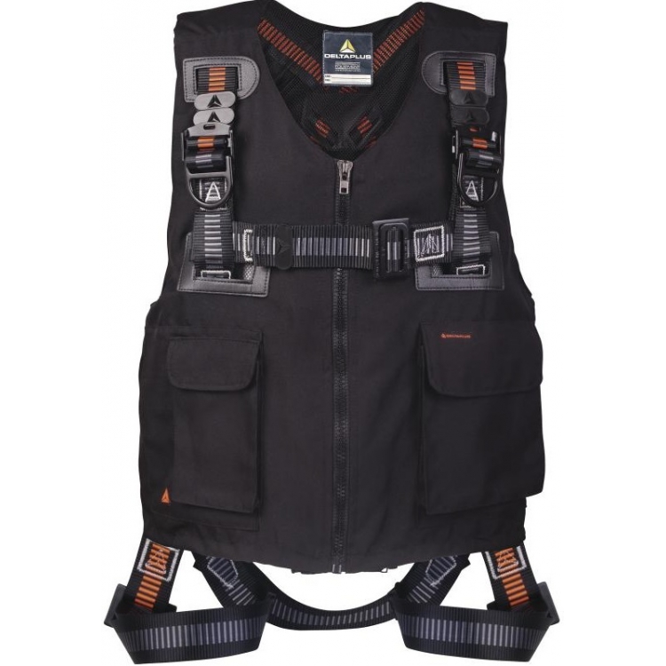 Привязь для позиционирования Delta Plus HAR23GIL2 представлена размерами от S до XXL и выдерживает вес до 150 кг. Жилет изготавливается из полиэстера, застегивается на молнию и дополняется четырьмя карманами. В модель вшит индикатор срыва.