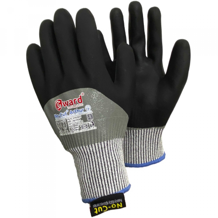 • Перчатки Gward No-Cut Arthur 5-го класса обеспечивают надежную защиту от порезов, на что имеются соответствующие сертификаты, выданные после лабораторных испытаний. В их основе лежат HPPE-нити и стекловолокно. Покрытые нитрилом в два слоя изделия обладают высокой прочностью и износостойкостью.
