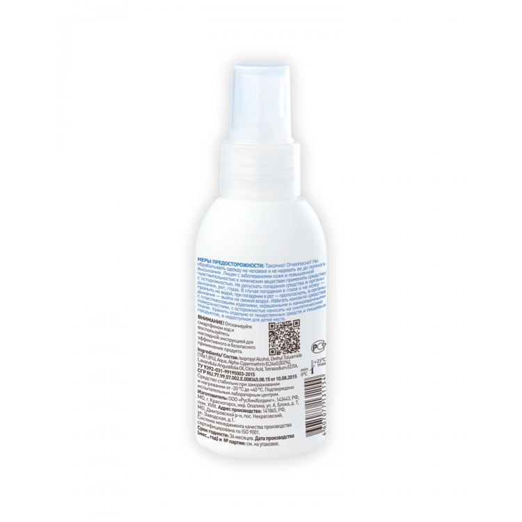 Спрей изготовлен и соответствует требованиям ТУ 9392–031-99195003-2015, что подтверждено декларацией о соответствия. Средство относится к первой категории эффективности, что доказано лабораторными испытаниями.